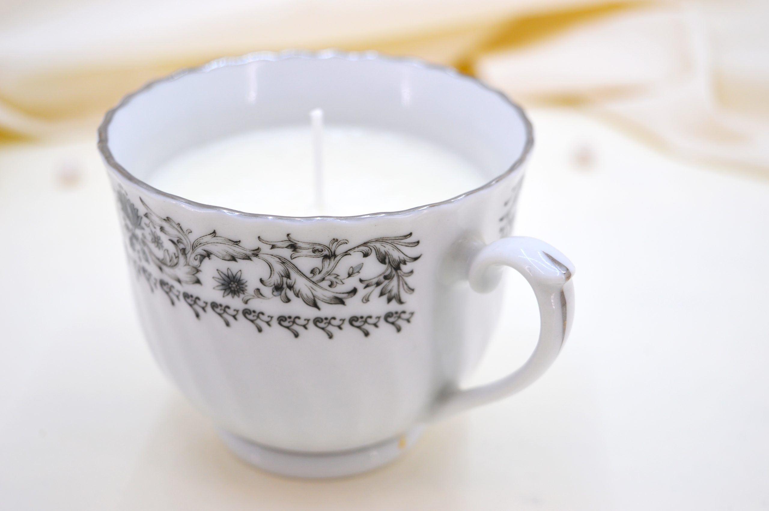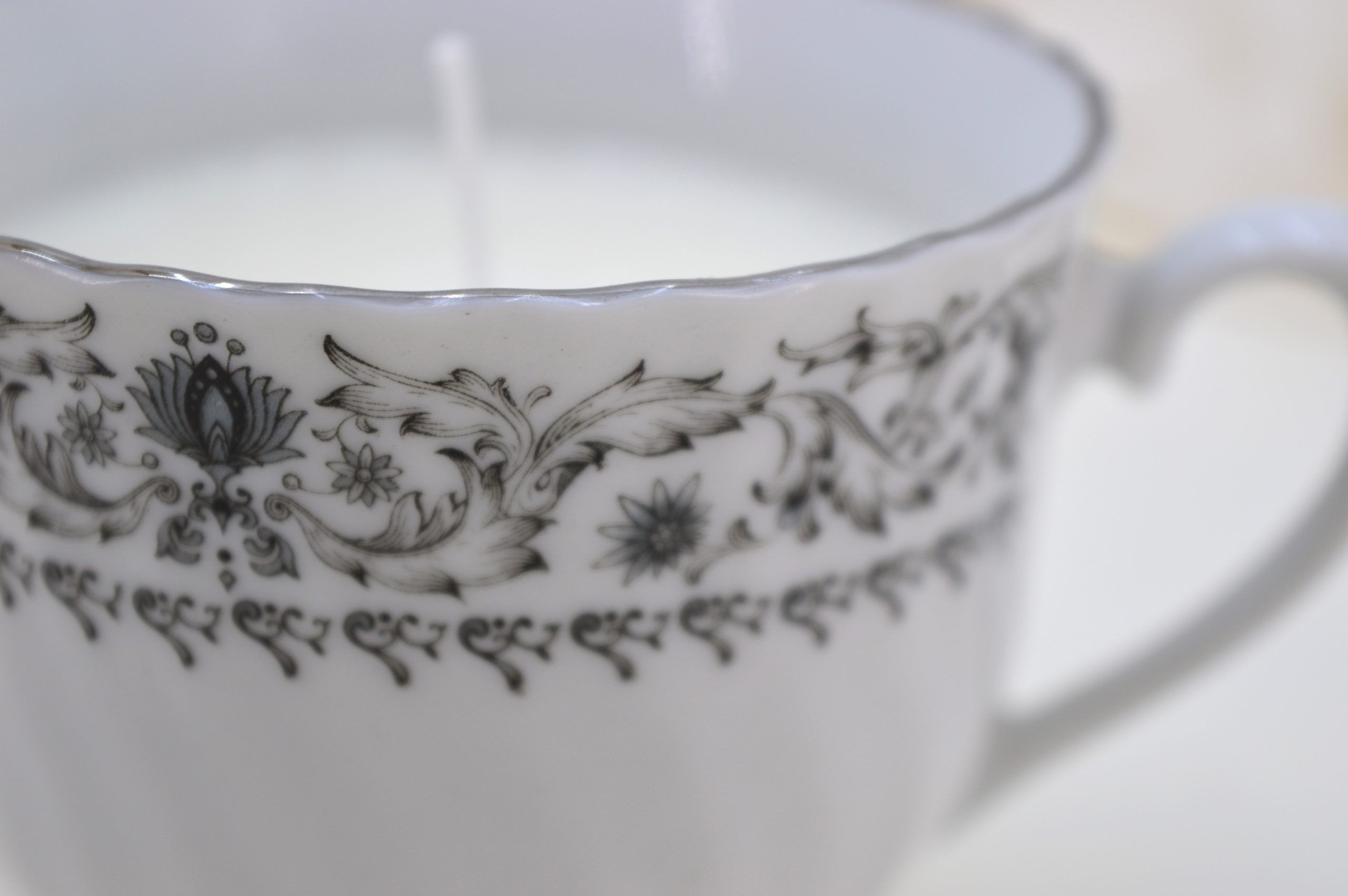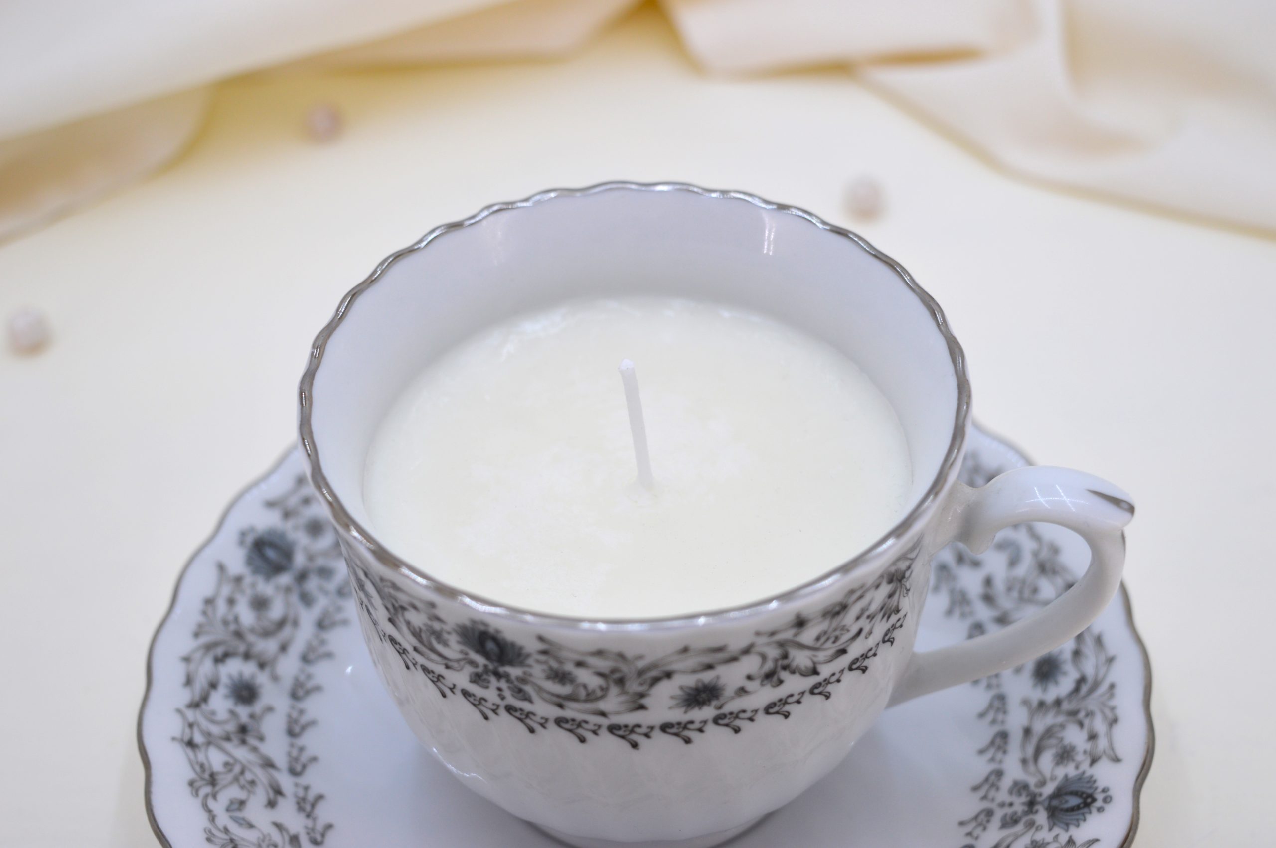 Silver Antique Flowers Soy Candle Teacup and Saucer Set